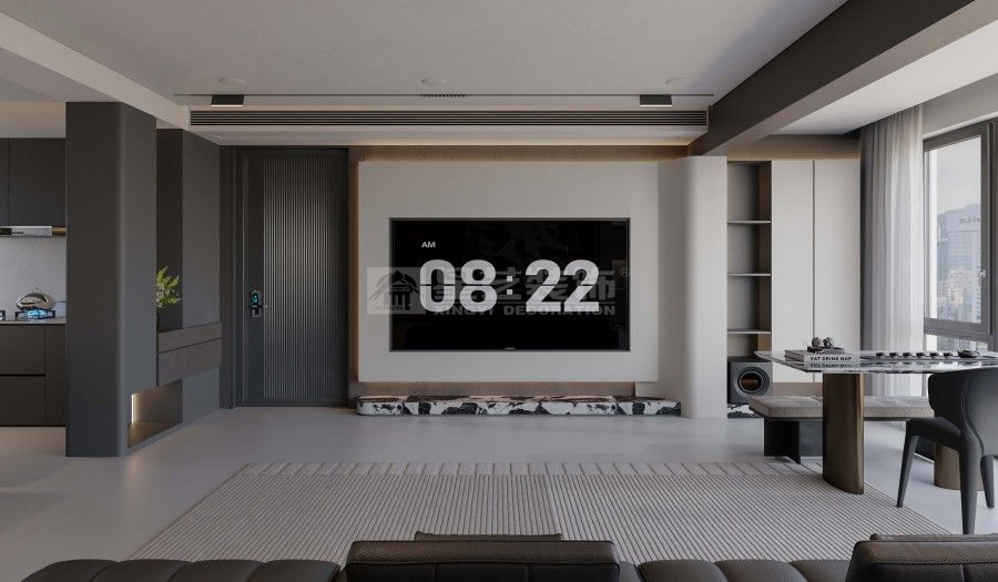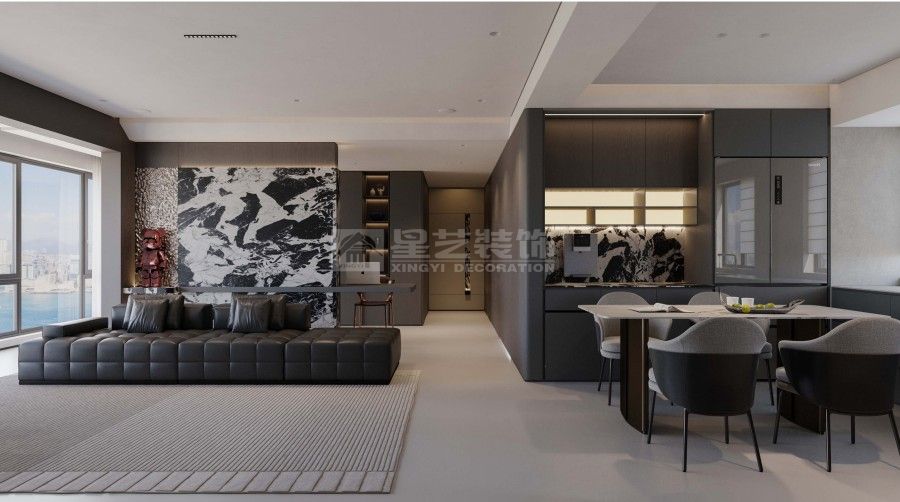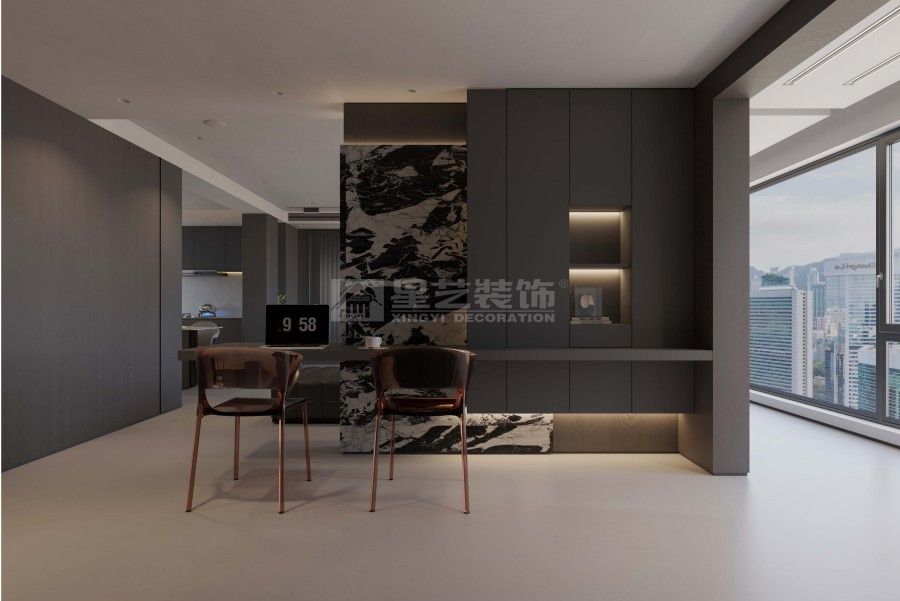 开放式书房和半开放的厨房餐厅设计 把空间的界限模型 空间得到最大的扩大 结合材质灯关和现代造型