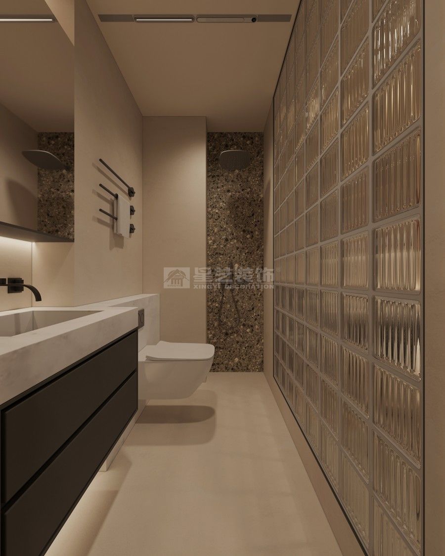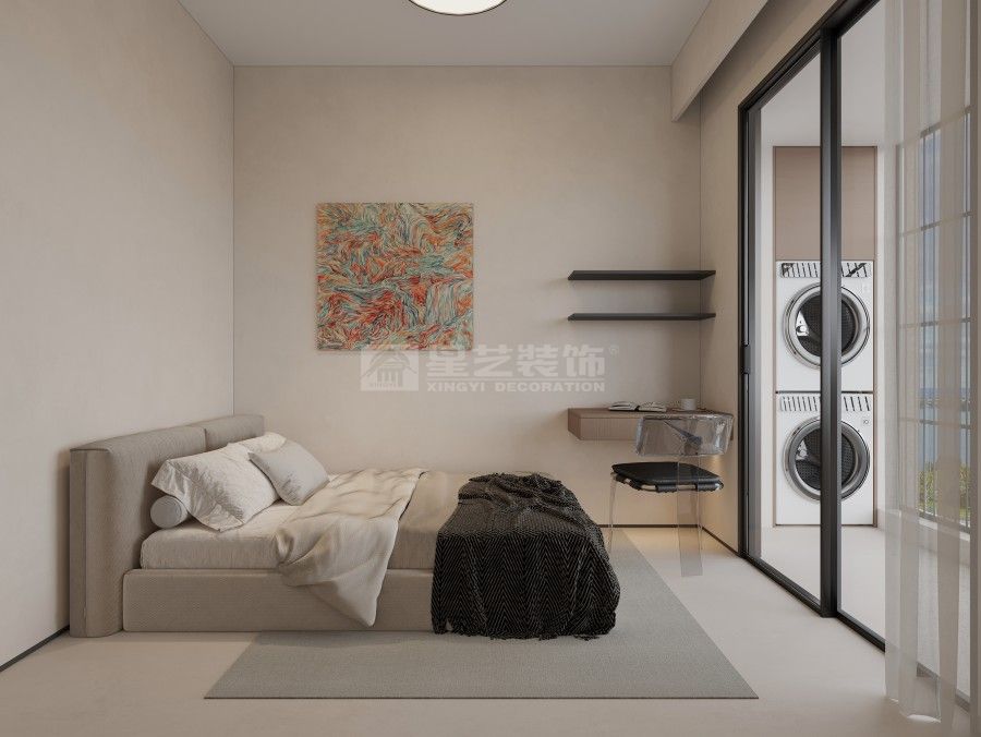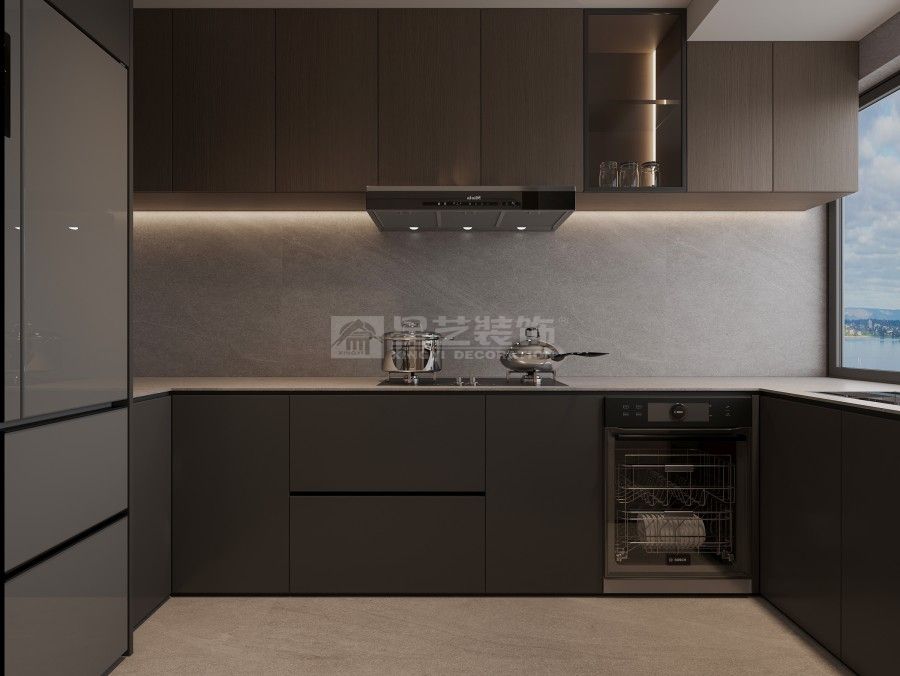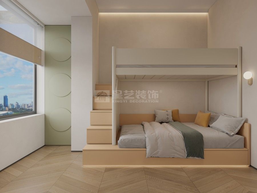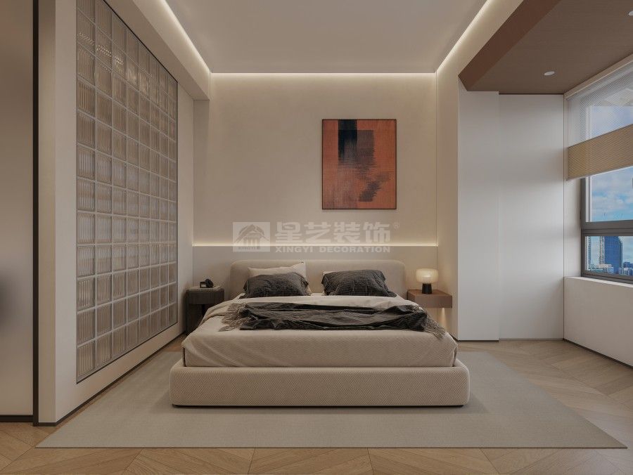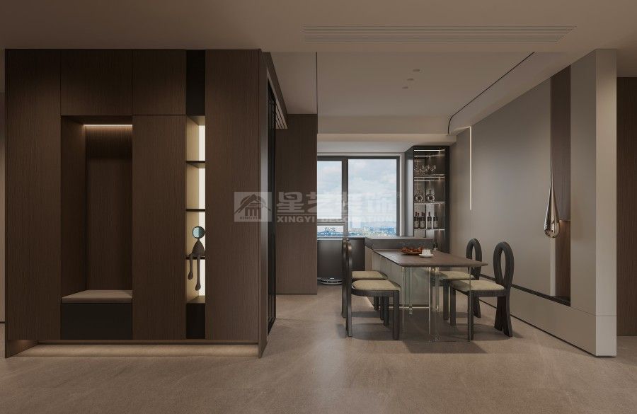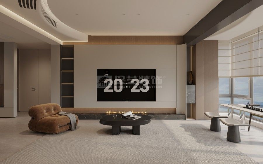 本案客厅结合梁位和空调的合理位置,吊顶设计成圆形吊顶,提高整体性。